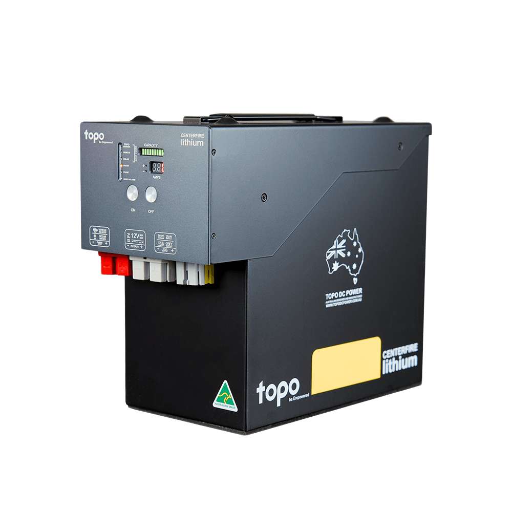 This distribution board is a specialized power management accessory designed to interface with Topo’s portable lithium power systems.