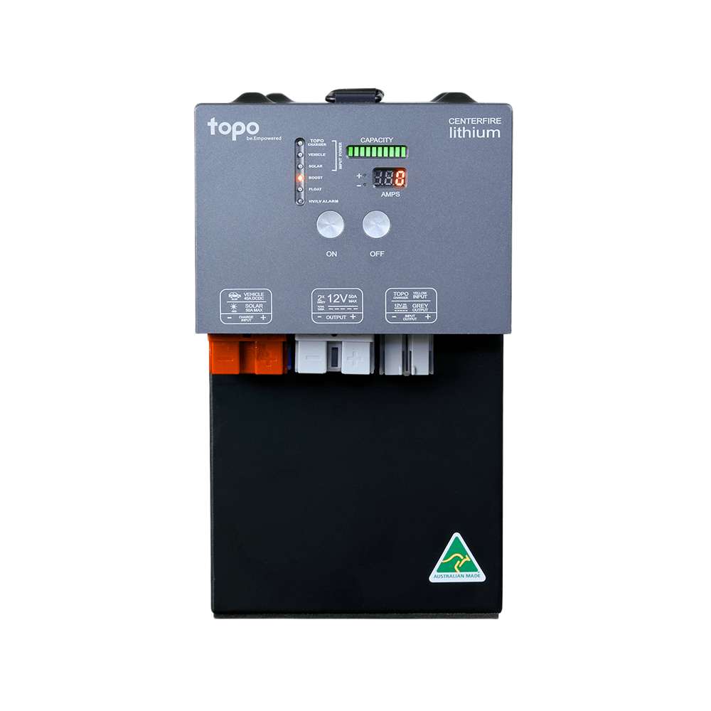 The TOPO 10A Mains Charger is a compact, automatic 10-amp AC-to-DC unit designed for fast, safe charging of 12V LiFePO4 batteries.